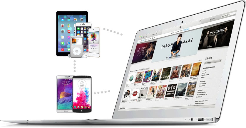 Transfer your iTunes media files (Music, Playlists, Movie, Podcasts,TV Shows, iTunes U... ) without device limitation.