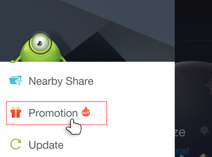 2. Open the app, click the top menu and go to "PROMOTIONS"
