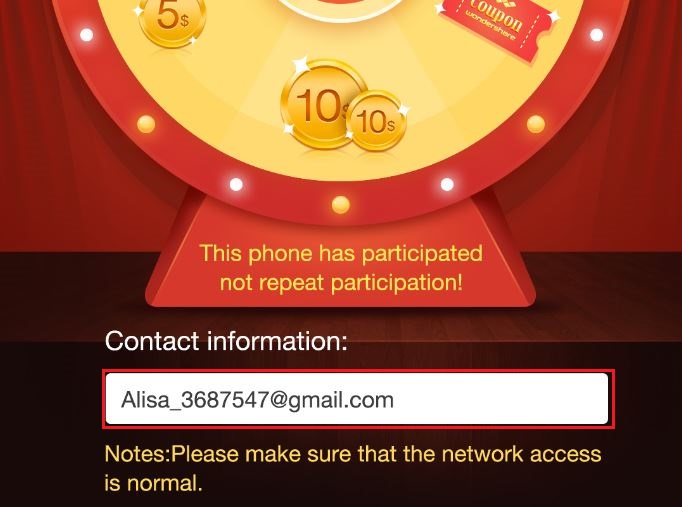 3. Enter your Email address, play the lucky draw